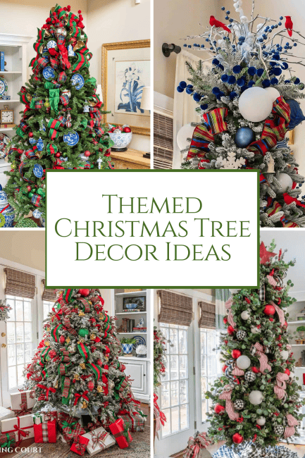 Get inspired by beautiful themed Christmas trees, including traditional, chinoiserie, blue and white, glam, and cozy cottage style decorating ideas.